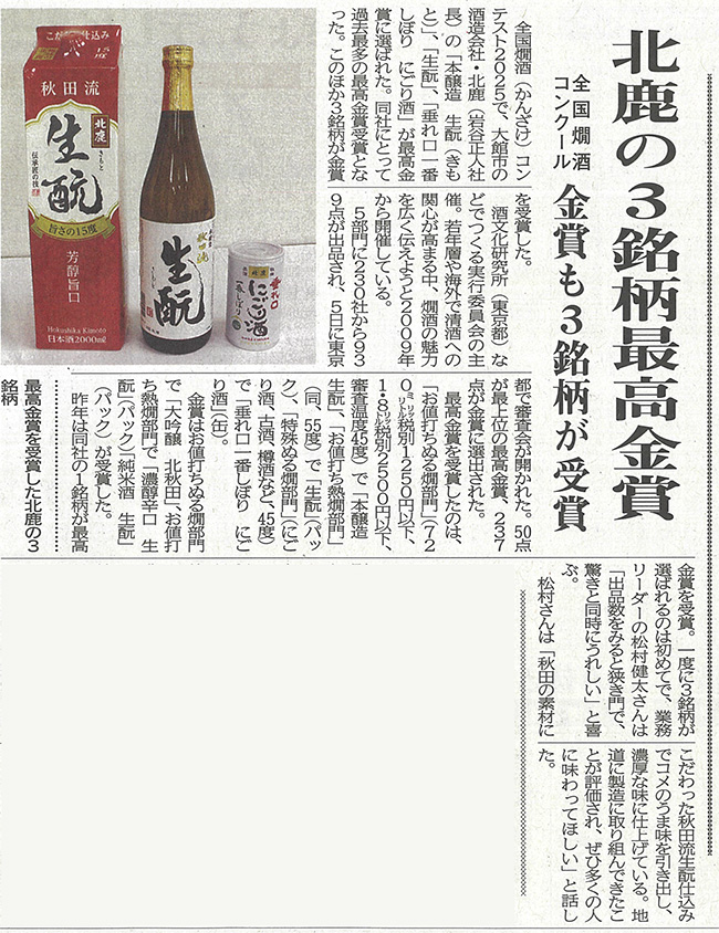 北鹿は最高金賞を3部門、更に金賞も3部門で受賞しました。これから寒い季節になっていきます。是非燗酒でもご賞味ください。