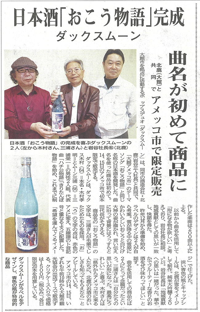 今回、お酒が出来た経緯など新聞にて大きく取り扱われております。