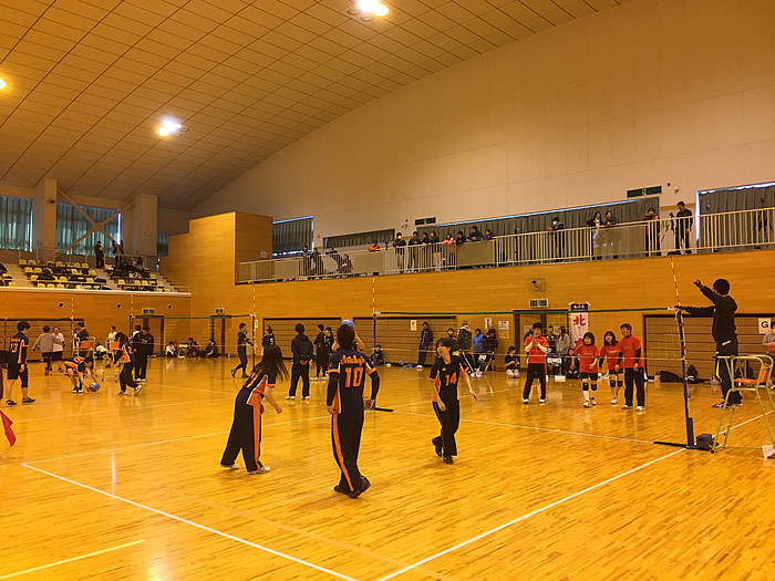 大館市連盟などが主催する第25回北鹿杯ソフトバレーボール交流大会が26日、大館市田代体育館で開かれました。 愛好者の親睦などを目的に年一回開催され、今年は58チームが参加し、4人制の8部門で熱戦を展開しました。ヤングハチ公の部で優勝したチュライ(大館)など北鹿勢は4部門で頂点に立ちました。