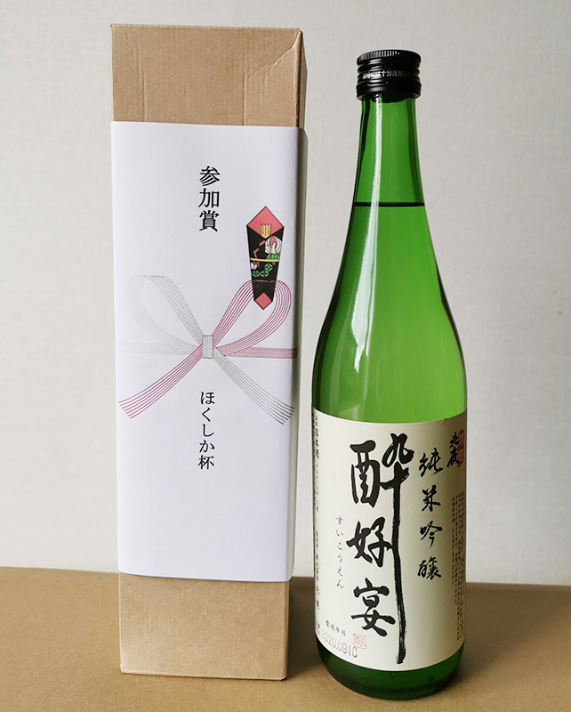 賞品の良いことで知られております「ほくしか杯ゴルフコンペ」今回は特にご協賛が多く豪華賞品となりました。参加者全員の方に北鹿「純米吟醸 酔好宴」720㎖を進呈しました。