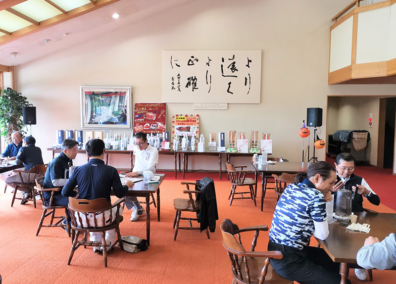 今回のコンペはコロナウイルス感染防止のため表彰式を中止し前半のハーフ集計にしました。成績表はプレー終了後、館内に掲示・配布しお帰りの際に賞品をお持ち帰りして頂くスタイルの実施となりました。