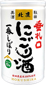 "おウチで手軽に愉しむ本格派の地酒"秋田の極上にごり缶「北鹿 垂れ口一番しぼり にごり缶180ml」です。