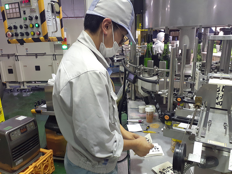 ラベラーとは瓶酒を詰める際にお酒が詰まった瓶にラベルを貼り付ける工程だ。