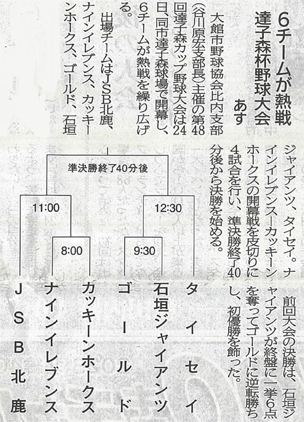 9月24日(日)、達子森カップ野球大会が開催され、北鹿は企業チーム(JSB北鹿)として参加しました。