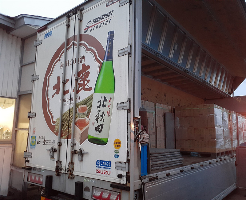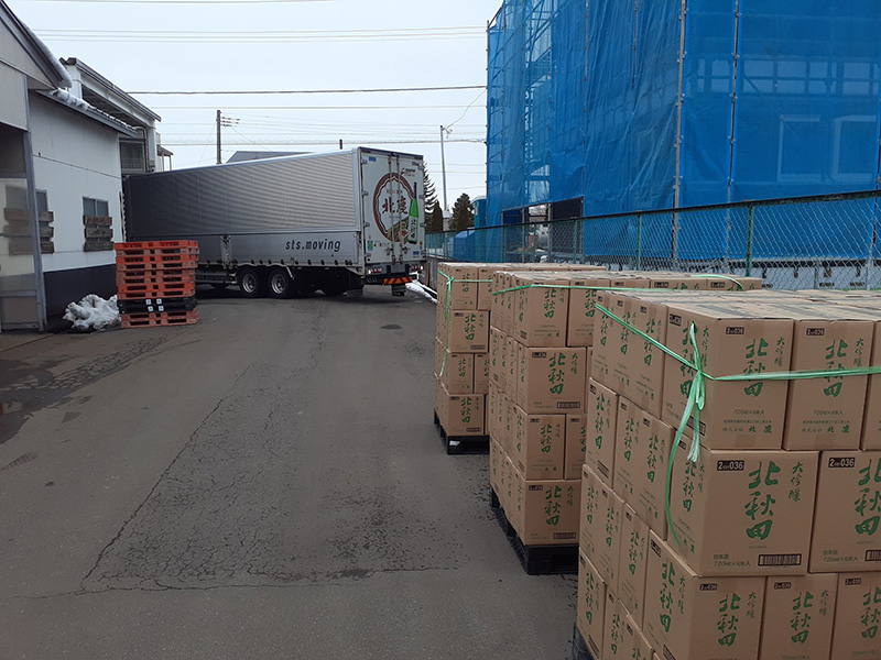 年末年始は忘年会や新年会、親戚の集まりや御神酒などお酒がより活躍する時期です。 写真は、北鹿の広告を載せているトラックに積み荷をしているところとなります。 本年も弊社の商品をご愛顧いただきありがとうございます。 来年も社員一同、より良いお酒を造って参りますので変わらぬ応援の程よろしくお願いいたします。