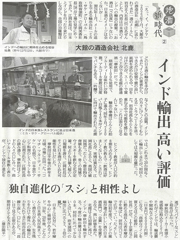昨年インドへの輸出が始まったことが記事となっております。 余りお酒を飲むイメージがない輸出先でしたが、様々な国に需要があるかもしれないと改めて感じた出来事でした。詳細が書いておりますので是非ご覧ください。