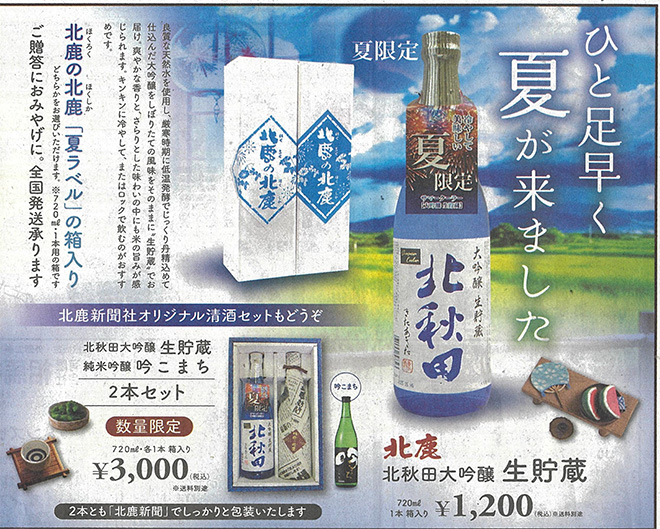 北鹿(ほくろく)の北鹿(ほくしか)、地元の北鹿新聞社がおくる第8弾!一面トップ下に独自広告を掲載しております。