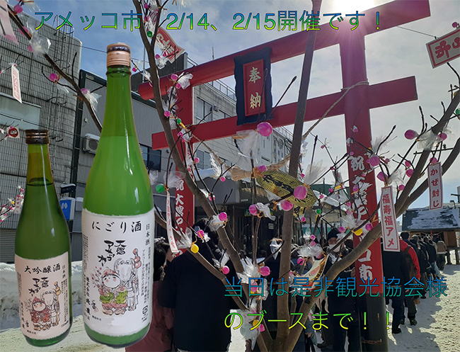 アメッコ市だけの限定品(にごり酒・大吟醸酒)を、お求めやすい価格で販売いたします。
